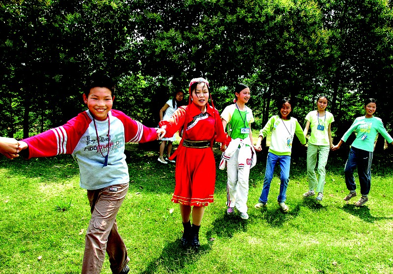 崔志荣(中)与学生们共同交流。 ·李文军摄·