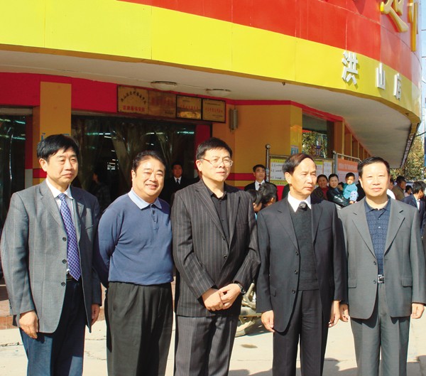 全国总社监事会主任刘环祥(右二)、省供销社主任张祖新(右一)、市长李红云(右三)到市供销社调研。