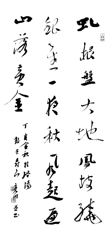 虬根盘大地,凤枝绕银星。一夜秋风起,遍山落黄金。