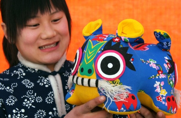 2月15日,在2008首届中国枣庄旅游美食文化节上,一名女青年在观赏“虎头枕头”。当日,2008首届中国枣庄旅游美食文化节在山东枣庄市光明广场开幕。丰富多彩的民俗展示、多种多样的传统小吃等集中亮相,吸引了许多市民。 新华社发