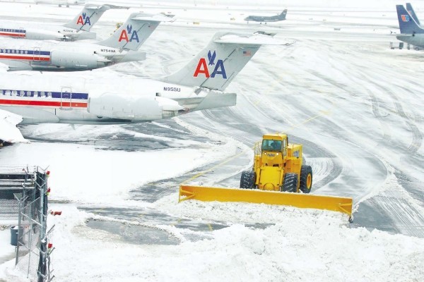 2月22日,铲雪车在美国纽约拉瓜地亚机场清理积雪。当天,美国东北部地区遭遇暴风雪袭击,造成道路交通堵塞,1000多架次航班被延误。