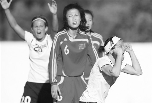 由于首战以大比分败给美国队,今天中国姑娘在与挪威队的比赛中从一开始就十分注意防守。第40分钟,挪威队在一次反越位中成功得手,从右路攻入中国队的防区,然后在禁区内的混战中攻入一球。上半场结束,挪威姑娘1:0领先。