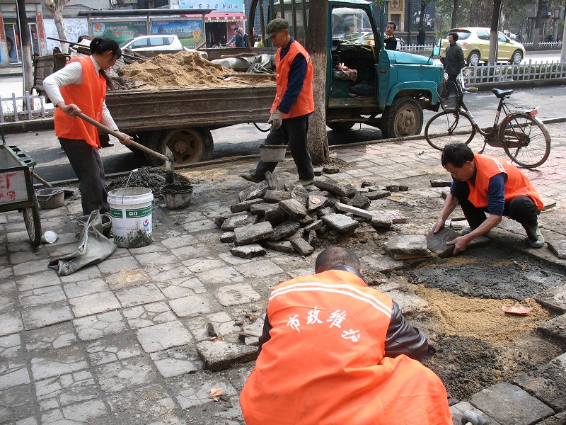 昨日,市政维护工人在随州城区烈山大道维修路面。连日来,市政管理处为加快城区创建力度,组织市政维护小分队分别对城区主要街道破损塌陷的人行道进行维修。