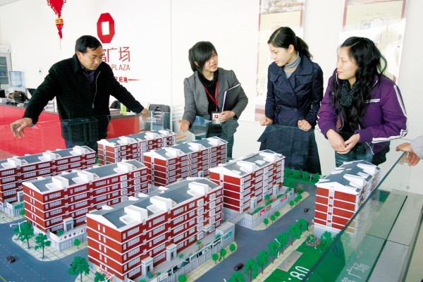 经济社会全面发展,同时拉动了集镇住宅的发展,图为财富广场营销楼盘前住户预订踊跃。