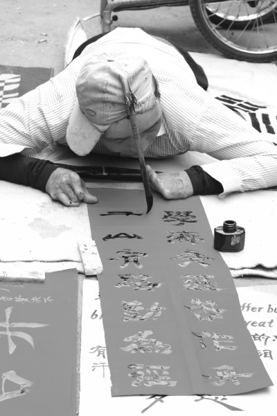 三月二十一日,三十一岁的天门残疾人张志强(其双手在烈火中烧坏)。在随州街头献艺,吸引了市民的目光。(徐军国摄)