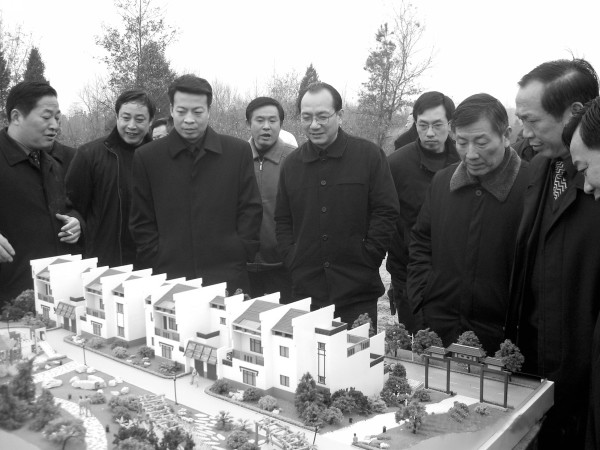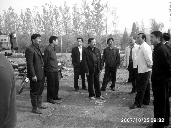 市委书记马清明(右二)到吉祥寺村察看农村沼气建设。 曾都区区长杨增(中)能到吉祥寺村调研。用上沼气的农家厨房,窗明几净。