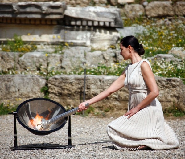 三月二十二日,扮演最高女祭司的玛利亚·娜芙普利都在进行试采火。当日,希腊奥林匹亚再次举行北京奥运会圣火采集仪式彩排,并成功试采到新的火种。(新华社发)