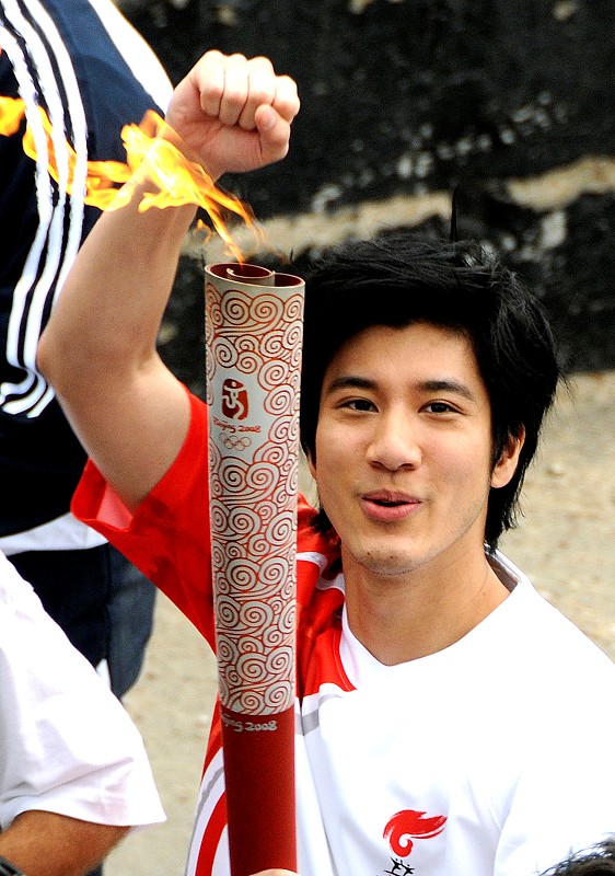 3月24日,中国火炬手王力宏在进行传递。当日,北京奥运会圣火在奥林匹亚被成功采集,并开始在希腊境内传递。 (新华社发)