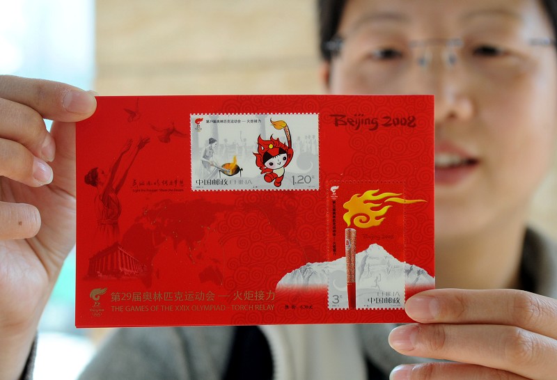 3月24日,国家邮政局发行《第29届奥林匹克运动会――火炬接力》纪念邮票一套两枚,主题分别为 “点燃”和“传递”。