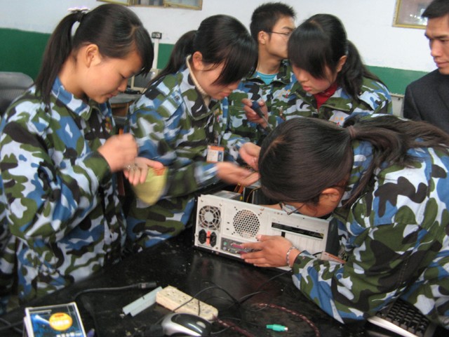 曾都职业技术学校坚持“育名师、办名校、打造职教航母;炼意志、学技能、培育精品蓝领”的办学理念,积极推行理论教学和实践相结合的学习模式,把工学结合作为职业教育人才培养模式改革的切入点,切实加强实训实习基地建设。图为该校电工电子专业的学生正在进行实习教学。(本报记者邱学锋摄)