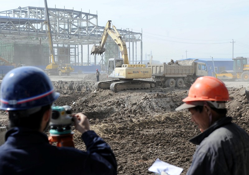 备受瞩目的空客A320系列飞机天津总装线项目,总装厂房以及部件库正在紧张地建设中。这是空客公司在欧洲外的第一条生产线。天津总装线项目分为总装厂房、喷漆厂房、动力站、飞机库、总装设施、室外设施、基础设施7个子项,19个单体建设及构筑物。今年8月第一架飞机开始在这里组装,2009年6月第一架飞机交付,2011年将达到年产44架飞机的组装能力。图为工人们在喷漆厂房外工作。 (新华社发)
