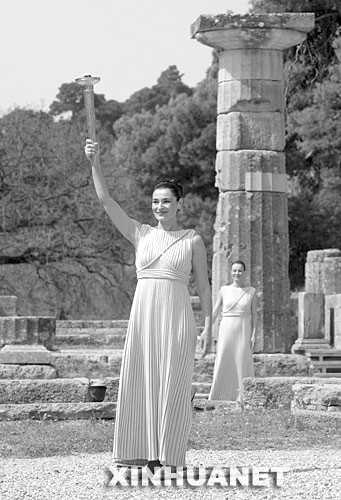 扮演最高女祭司的玛利亚·娜芙普利都高举圣火