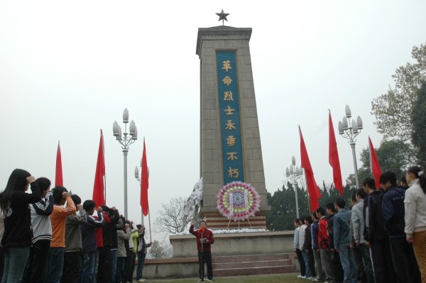 四月一日,随州市科技职校全体师生到市白云山烈士陵园祭扫烈士墓,并举行新团员入团宣誓。这项活动使学生们受到了一次革命传统教育。(陈德友摄)