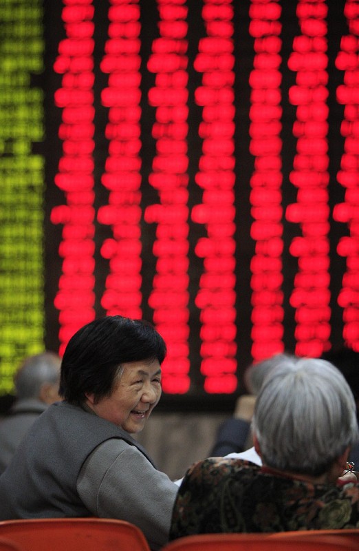 4月7日,股民在上海一家证券营业部关注股市行情。当日,沪深股市突现强势反弹,上证综指报收于3599.62点,较前一交易日上涨4.45%,深证成指报收于13396.61点,涨幅高达5.88%。 (新华社发)