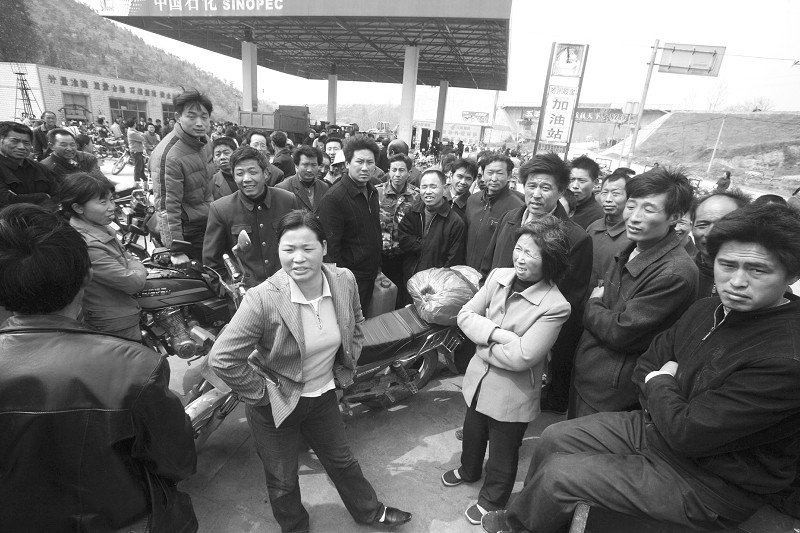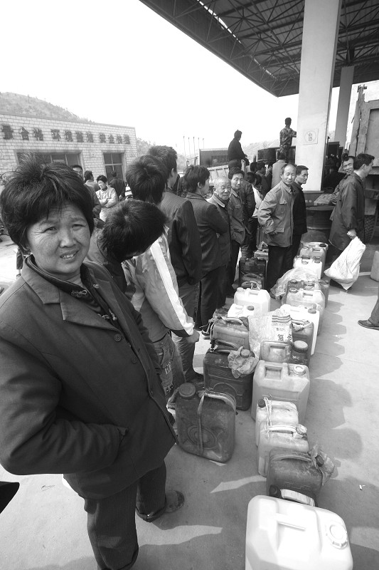 上图:村民们说,排队虽然苦,但插队的特权油、人情油更让他们烦心。