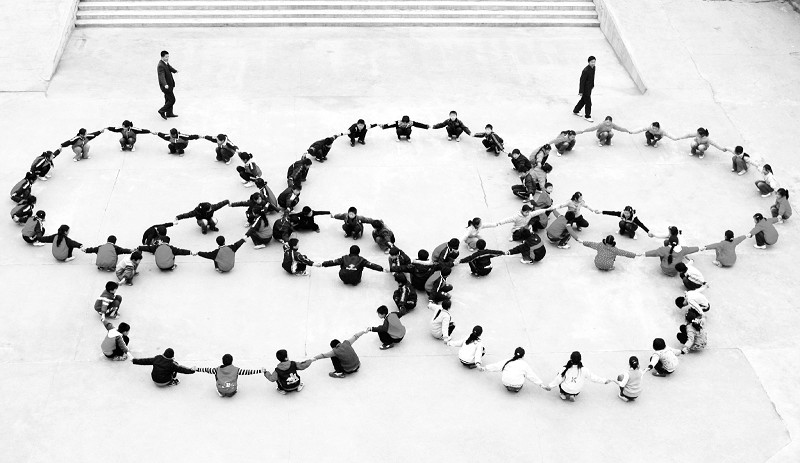 昨日,曾都区环潭镇涢阳小学以“童心爱奥运”为主题的活动在该校开展。瞧,操场上,孩子们围成 “五环”。 (本报记者 汪清先杨闻名 通讯员 余明贵摄)