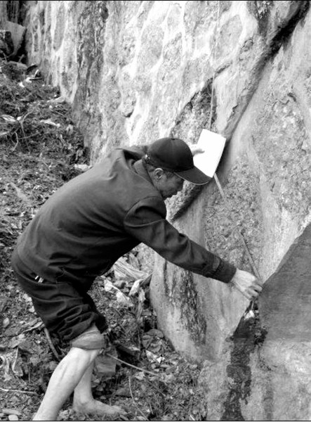 4月16日,曾都公路段桥梁工程师王天顺正在赤脚检测危桥。今年,我市将投资2500万元对15座危病桥梁进行维修加固。 (通讯员 刘文生 孙宇峰摄)