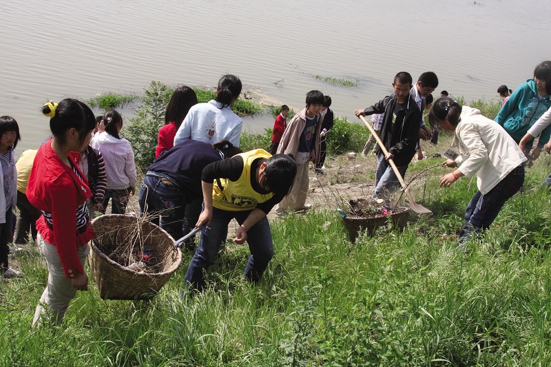 ·随州技师学院数百名学生在随城白云湖大堤清捡垃圾物
