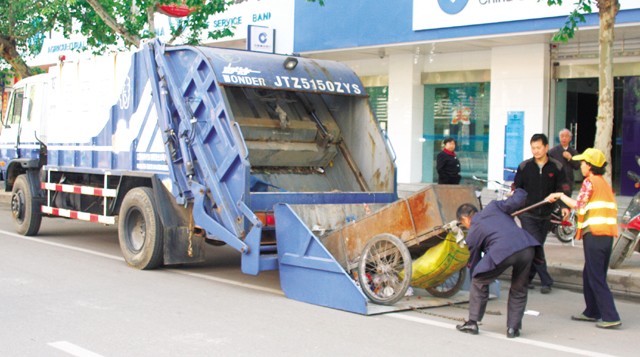 ·流动垃圾车上岗