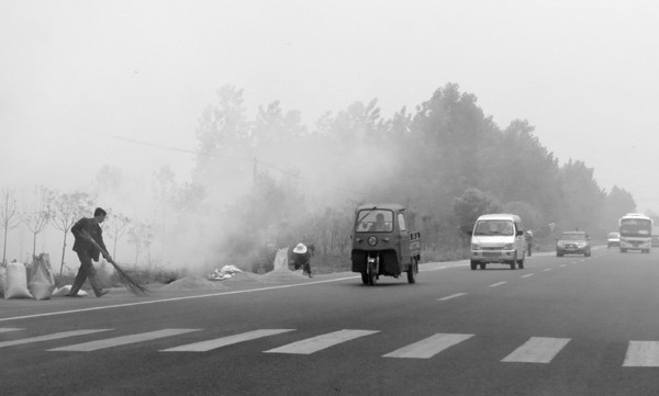 近日,我市一些乡镇农民仍随意焚烧秸秆,既造成空气污染,又影响行车安全。(本报记者孙洪涛摄)
