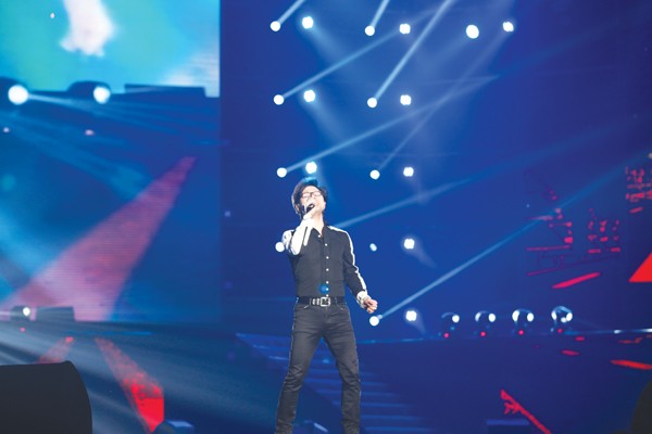 5月27日晚,随州2015慈善感恩答谢演唱会在滨湖体育运动场激情开唱。图为歌手汪峰演唱经典曲目 《春天里》。(本报记者 徐 斌摄)