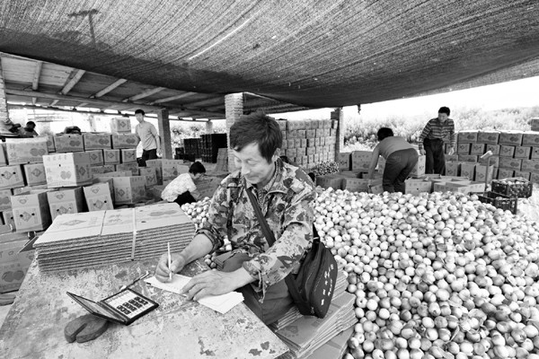 5月26日,随县尚市镇群金村果农正在出售新上市的油桃。今年雨水充沛,油桃获得大丰收,该村6000亩油桃总产可达1.2万吨。 (本报记者 李文军 通讯员 韩铁流 摄)