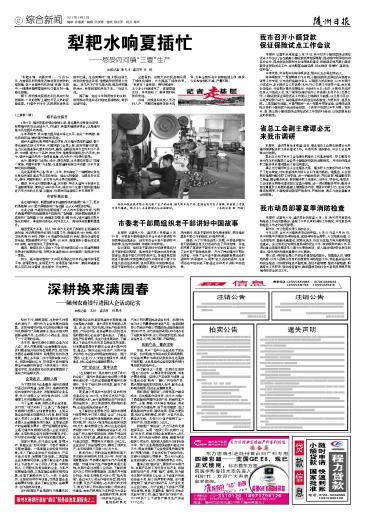 本报记者唐天才 通讯员白 俊 “犁耙水响,机器欢唱……”5月26日,在曾都区府河镇紫石铺村新近流转的稻田里,数十台插秧机欢快地“奔跑”在田中,一排排秧苗顺着插秧机口整齐划一地插在田