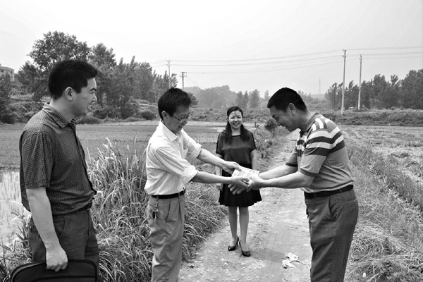 市人社局负责人日前向随县环潭镇龙河村送去2万元扶持金,支持该村“三夏”生产。 (本报记者 李文军摄)