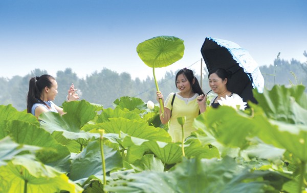 随县厉山镇能源中心流转土地250亩引种优质莲藕。鲜艳荷花、带须莲蓬、翠绿藕叶成为夏日乡村的美景。 (记者 孙洪涛 通讯员 龚承斌 杜呈宗摄)