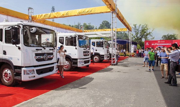7月21日,湖北程力集团举行十周年庆典及新品发布会,推出十余种专用车新品,图为客商参观新品样车。十年间,程力集团从产值不到800万元发展到年销售收入达到15亿元。(记者 徐 斌摄)