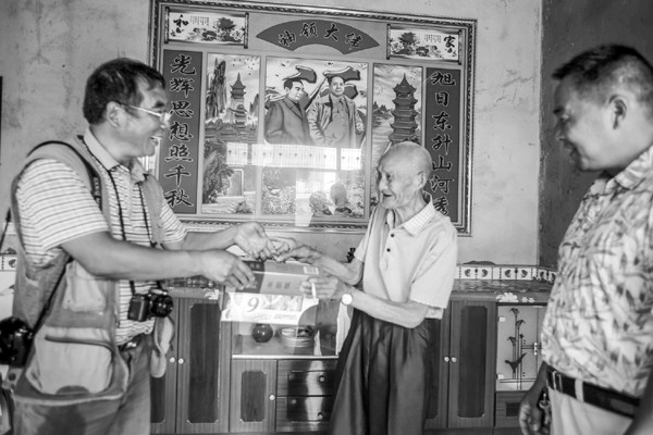 随州市“寻找抗战老兵”志愿者日前来到广水余店镇看望抗战老兵,并向他们送去了慰问品。(本报记者 孙洪涛 摄)