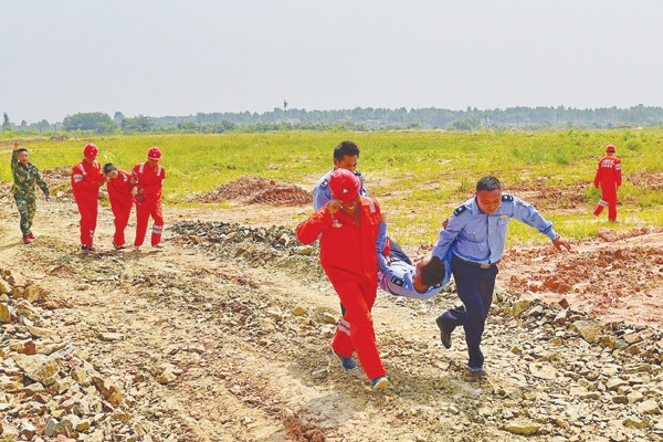 7月21日,市城乡工程机械管理服务中心工程机械应急救援队在编钟大道举行山体滑坡应急救援演练,出动3台应急救援车辆和15名救援队员参与贴近实战的救援。 (本报记者 李文军摄)