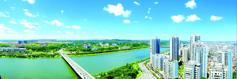 昨日,蓝天白云映衬下的随州城区一湖两岸风景犹如一张张美丽的明信片。网友们也忍不住纷纷在社交网站晒出各自拍摄的随城蓝天白云图。(记者 李文军摄)