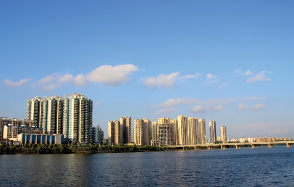 7月28日,随州的天格外的蓝。站在白云湖大坝上,蓝天、白云、高楼、绿树与一湖碧水相倒影,形成了一幅美丽的画卷。