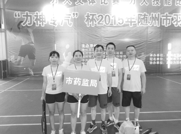 7月31日,由随州市总工会组织的“力神专汽”杯2015年全市羽毛球比赛在源动力羽毛球馆举行。随州市食品药品监督检验检测中心四名同志代表市食品药品监管系统参加此次比赛,他们团结拼搏,展示了食药监系统良好的精神风貌,荣获优秀组织奖。(通讯员 李冬梅摄)
