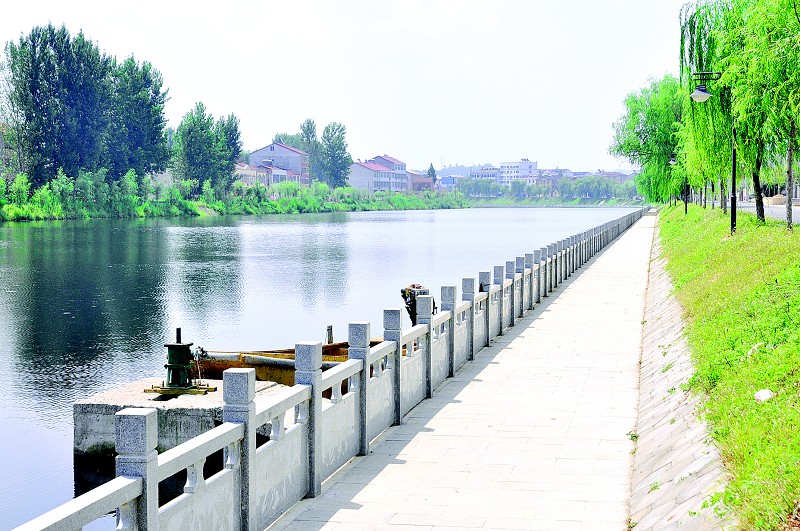 近几年,随县洪山镇投资千万元,对镇区东河、西河两岸进行环保型改造。如今,绿水绕镇而过,道路平坦干净,犹如一幅风景画。图为该镇东河风光一瞥。 (记者 陈德友摄)