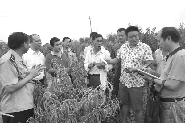 曾都区万店工商所日前邀请省农科院专家到该镇先觉庙村、横山村等地为当地种植户做技术鉴定。今年5月,该镇38位果农投诉在山东等地购买的果树苗品种不纯,影响收成,经过省农科院专家鉴定后将依法维护果农的利益。(记者 孙洪涛 通讯员 张光荣 何玉俊摄)