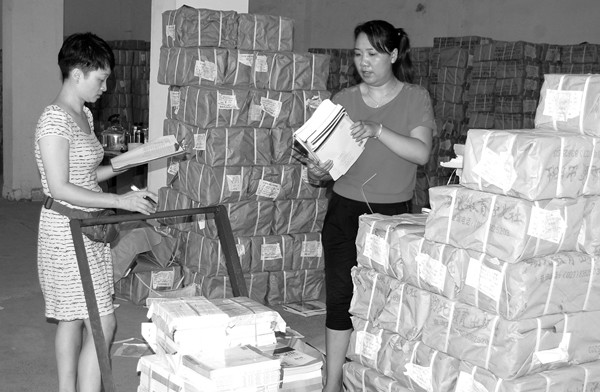 省图书集团随州公司日前加班加点分发中小学教材,确保全市学生秋季用书。(记者 孙洪涛摄)