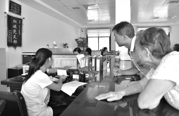 随州高新区淅河镇人社服务中心积极开展履职尽责活动,为辖区居民提供一站式便捷服务。图为人社服务中心工作人员热情为居民办理养老金领取手续。(本报记者 孙洪涛通讯员 王 涛摄)