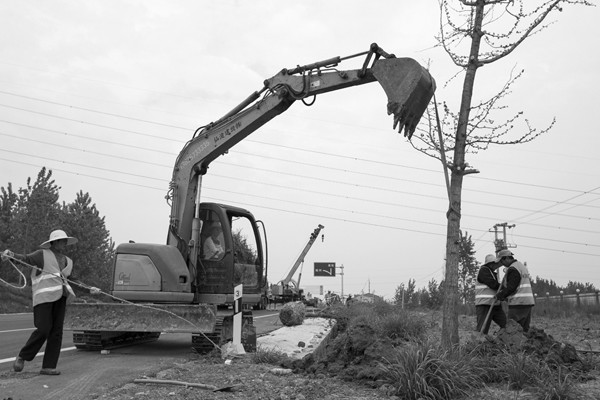 新316国道绿化正在抓紧施工中,道路两侧各50米范围内荒山荒地、稀疏林地将进行绿化美化,打造成集景观、效益、生态于一体的都市林业示范片。 (本报记者 徐斌 摄)