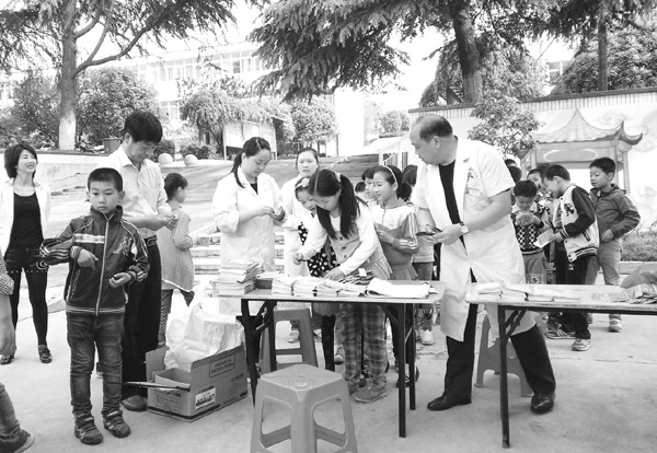 4月16日,随州普爱眼科医院为曾都区府河镇高级小学800多名学生免费进行视力检查,发放青少年视力保健手册,对学生进行保护眼睛知识宣传。(通讯员 府高晓摄)