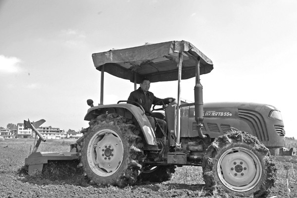 4月18日,随州高新区淅河镇漂水村村民驾驶旋耕机翻田整地,准备种植直播稻。(本报记者 王璟天摄)