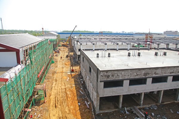 随州农副产品物流园建设项目一期主体工程基本完工,临街部分房屋正在装修。 (本报记者 王璟天 摄)