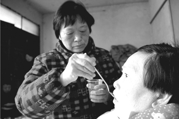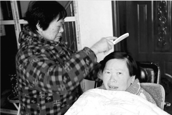 把儿媳接回家后,王光英和儿子一道悉心照料着,按摩、喂食、洗衣、洗脚、洗澡、洗头、梳头、翻身、换尿布、到外面晒太阳、给儿媳讲故事等等,她都做得一丝不苟,就像在照顾一个襁褓中的婴儿一样。斗转星移,王光英对儿媳的悉心照料始终没有改变。 “家庭困难,除了照顾儿媳,我还要种菜园、喂猪喂鸡、烧火做饭、耕种农田。”王光英说。