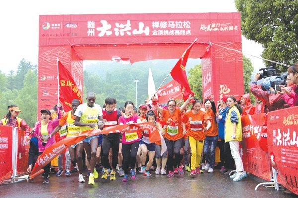 图为大洪山禅修马拉松金顶挑战赛起点。(本报记者 李文军 特约记者 贺晓利摄)