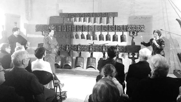 本报讯 记者周强、黄闯报道:4月17日晚,一场完整的编钟音乐会在法国卢瓦尔河畔蒙图瓦音乐博物馆举行,吸引了蒙图瓦及周边数个市、镇的观众前来,一睹中国编钟的独特风韵。来自随州古编钟文化公司的两位负责人应邀来访,并演奏了《东方红》、《竹枝词》、《欢乐颂》三支乐曲。编钟精致的制造工艺和独具一格的音色,令在场嘉宾惊叹不已。