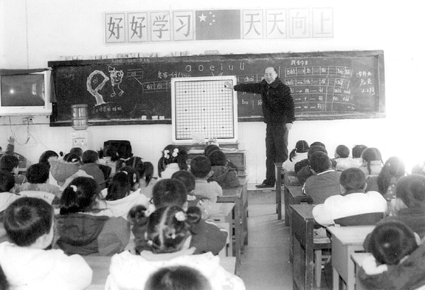 冷均鹏为孩子们讲授围棋知识。 (记者 陈琳摄)