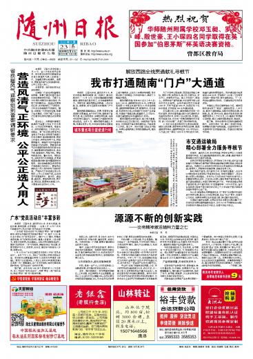 本报讯 记者冯家园、通讯员罗万东、熊家伟报道:黝黑的路面、统一的路灯、整齐的路沿石……5月16日,记者在随城解放西路看到,道路改造已基本竣工,正在栽植景观树木。寻根节前,解放西路全线贯通