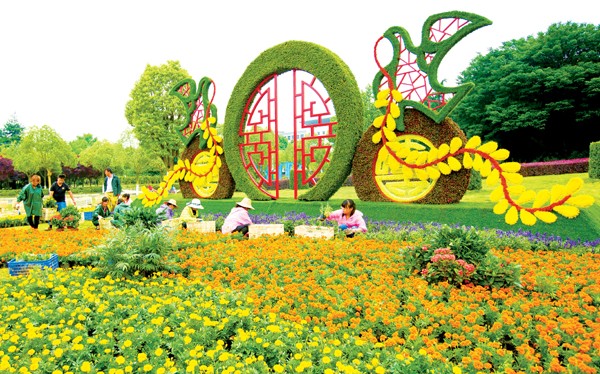 丙申年世界华人炎帝故里寻根节临近,园林部门抓紧时间在城区重要路口布置“寻根谒祖”为主题的花卉景观,迎接海内外嘉宾。(本报记者 徐斌摄)