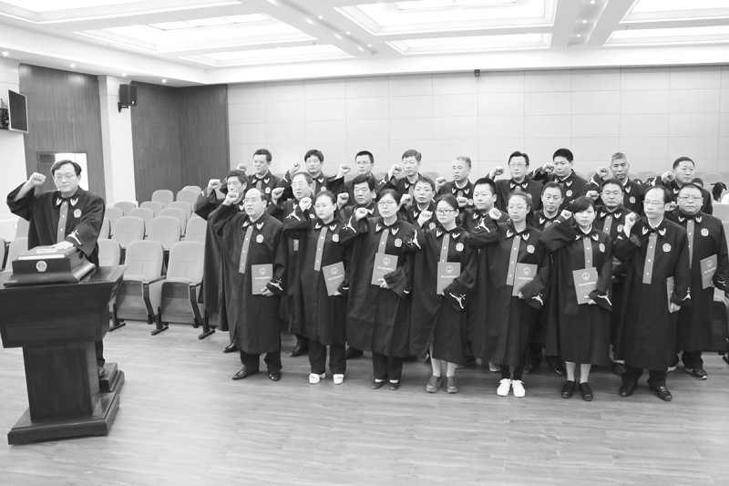5月19日,随县法院首批入额25名法官举行集体宣誓,他们身着法官袍、面向国旗,作出了庄严承诺。(通讯员 郑 昉摄)